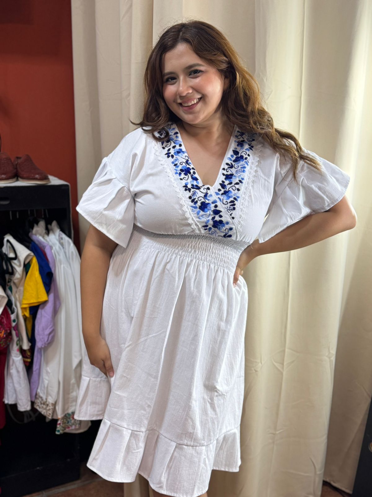 - Vestido semi Corto ,Bordado Azul Unitalla (S/M) , (M/L) O (L/XL)