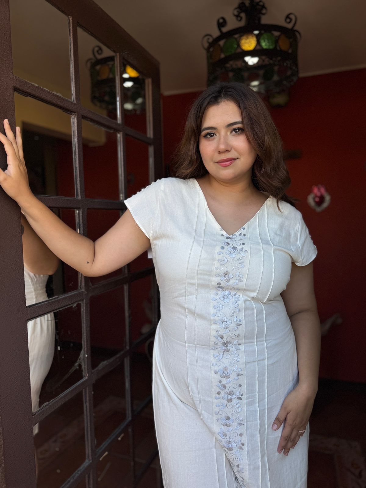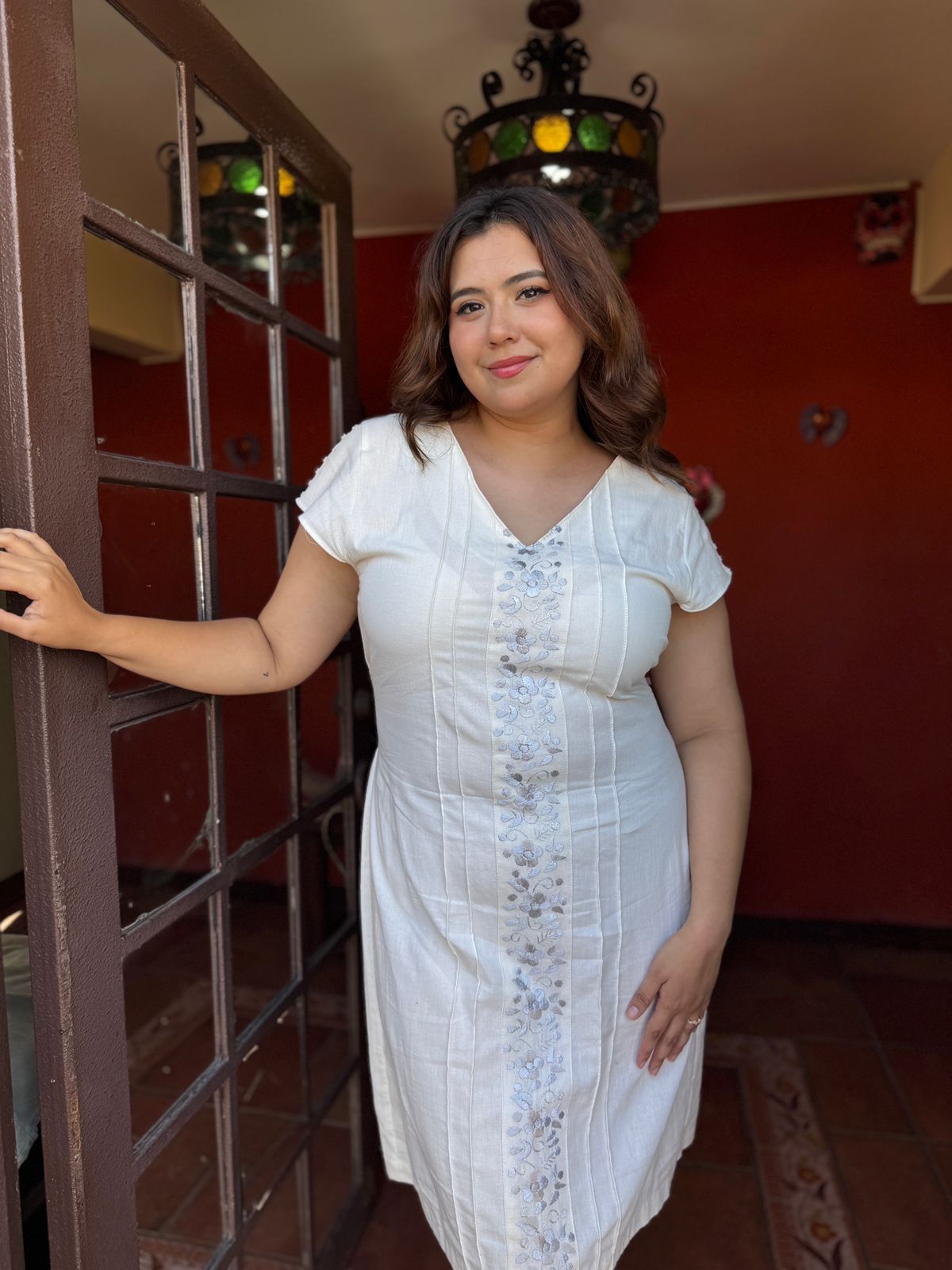 Vestido semi Corto ,Bordado Multicolor