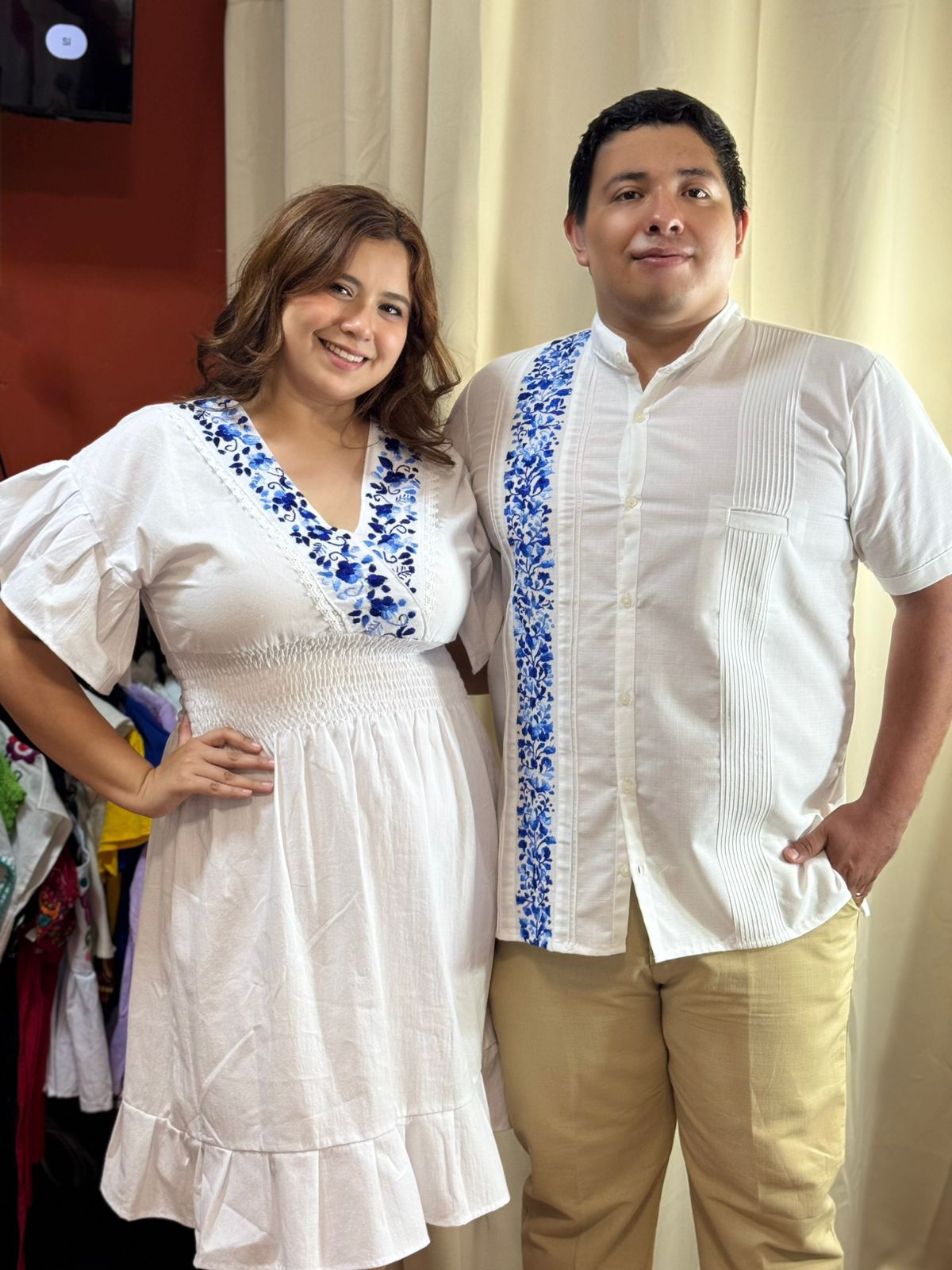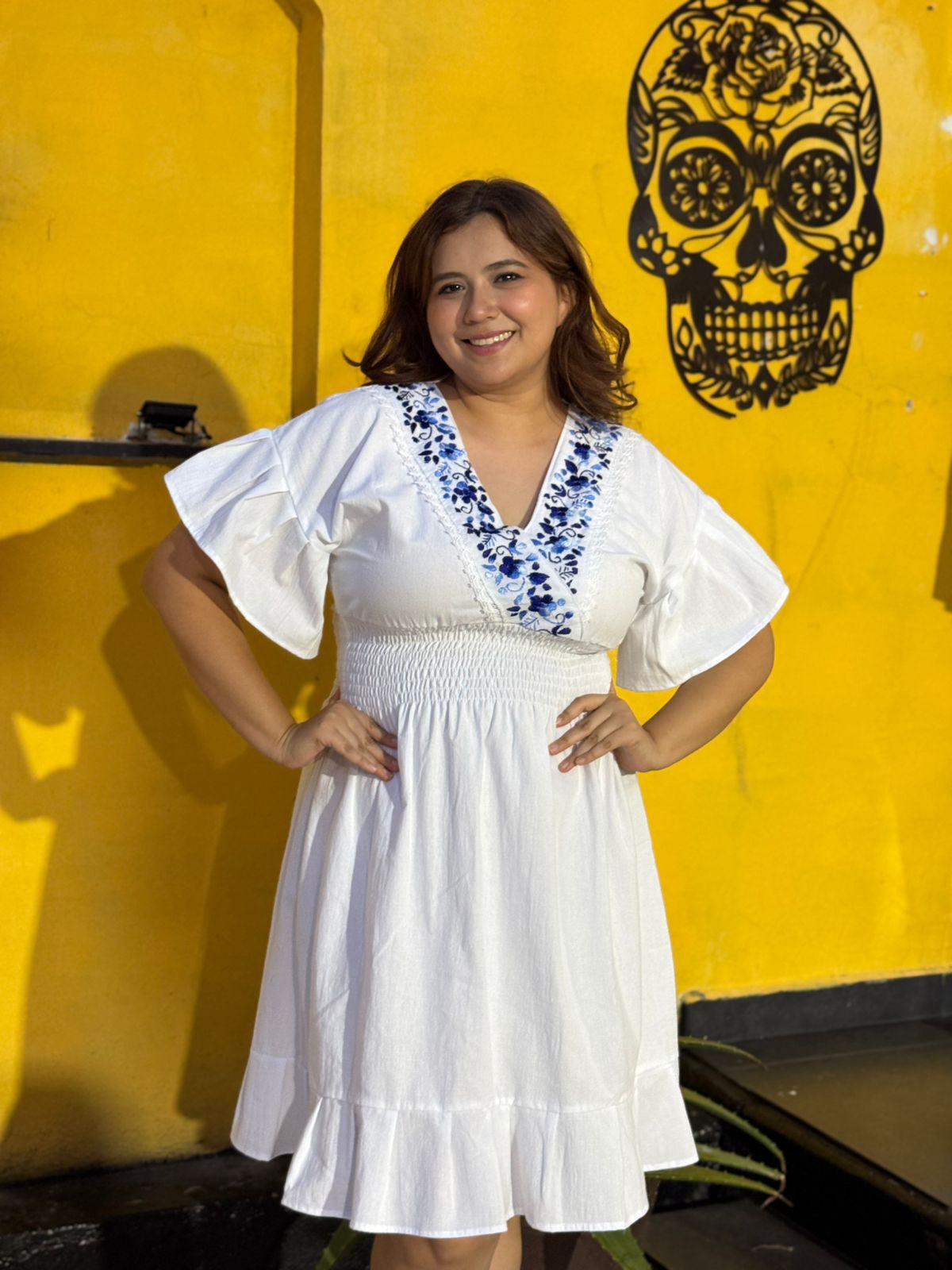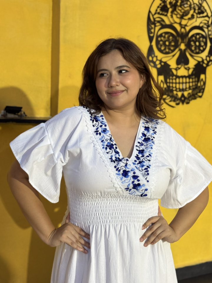 Vestido semi Corto ,Bordado Azul